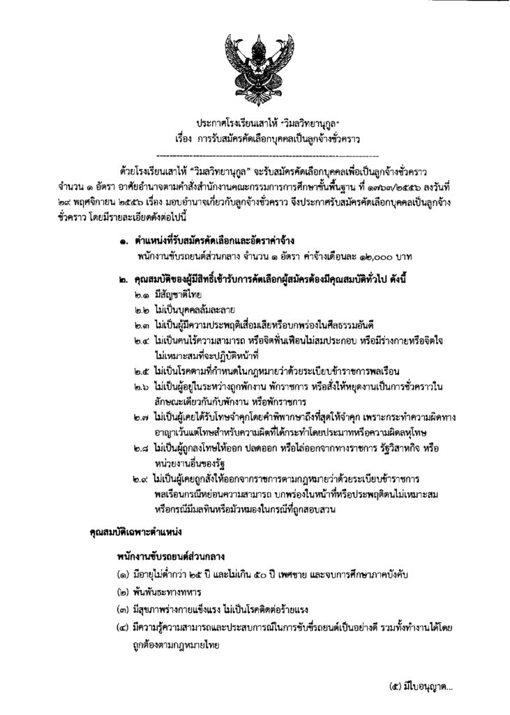 ประกาศ รับสมัครลูกจ้างชั้วคราว ตำแหน่ง พนักงานขับรถยนต์ส่วนกลาง